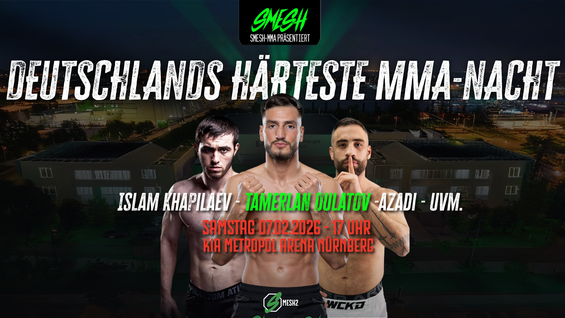 Erlebe den zweiten großen Kampf-Abend von SMESH-MMA. Spannende Newcomer, harte Fights und eine Atmosphäre, die dich vom ersten Gong an packt. Sei live dabei, wenn Geschichte geschrieben wird!
